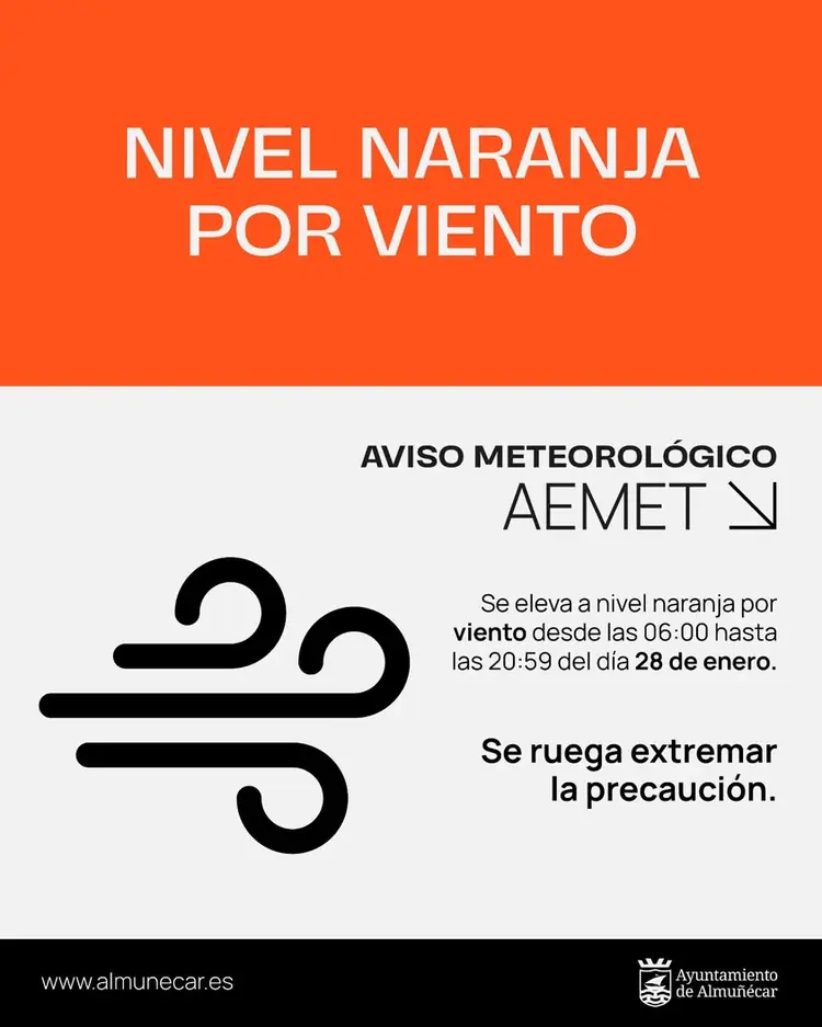 *MUY IMPORTANTE* El Almuñécar - La Herradura Ayuntamiento llama a la máxima precaución ante el episodio de lluvias y viento previsto para Mañana Miércoles 4 de Febrero Debido a la alerta naranja decretada en Andalucía y a la suspensión de la actividad lectiva, el Ayuntamiento refuerza el llamamiento