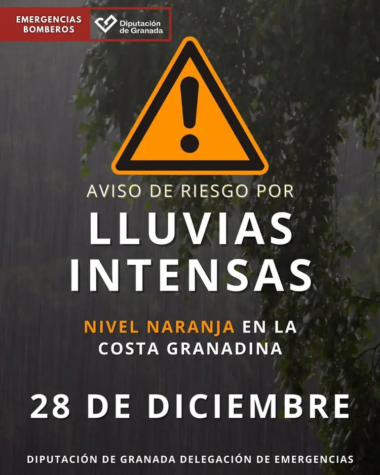 *ATENCIÓN MUY IMPORTANTE 28 DE DICIEMBRE DOMINGO:* Aviso de riesgo por "LLUVIAS INTENSAS" con "NIVEL NARANJA" en "TODA LA COSTA TROPICAL DE GRANADA" Comparte @seguidores